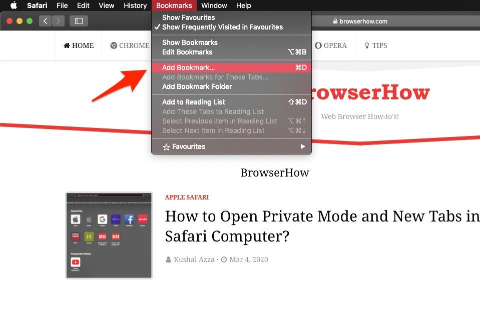 Add Bookmark from Bookmarks Menubar in Safari MacBook