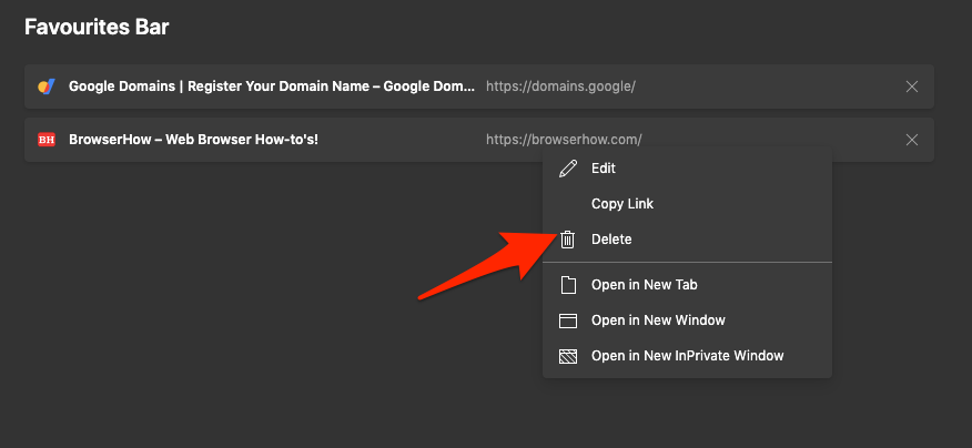 If a particular bookmark or favorite is no longer needed, you can quickly delete it from the Favorites. Here are the steps to remove a favorite: