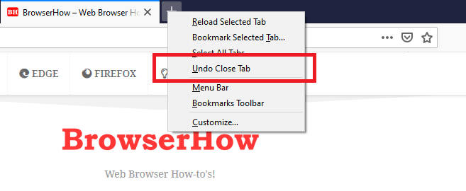 Firefox has a built-in feature to reopen closed tabs. It will open the closed tabs in the order they were closed. Here are the steps to undo the close tab: