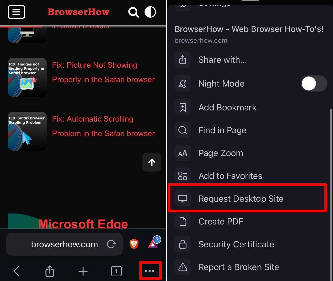 Now, to revert back to desktop site mode, you can tap on the same options menu and select Request Mobile Site option.