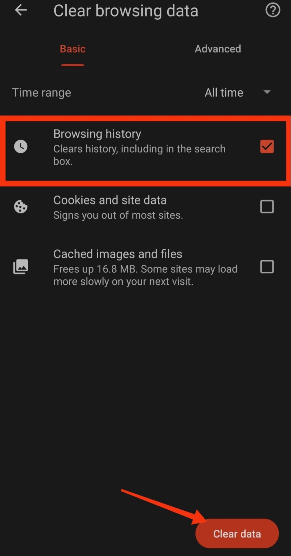 You can use the ‘Clear Data’ page from Privacy settings to delete the browsing history records from the Brave browser with one tap.